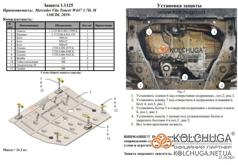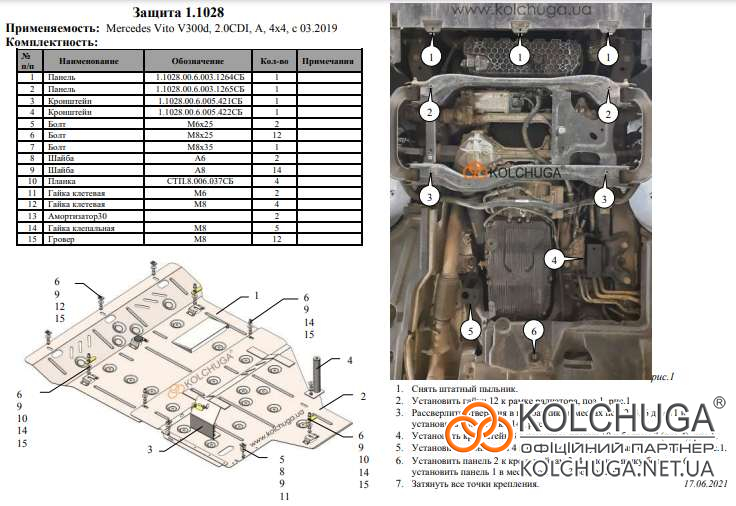 Ochrana motorového priestoru pre Mercedes-Benz Vito W447 NEW rok od 2019 sa vyrába pomocou moderných technológií z materiálov najvyššej kvality. Ako základ používame za studena valcovanú oceľ s hrúbkou 2 mm. Pomocou lisovania dávame ochrane jedinečný tvar pre každý automobil tak, aby sa montovala na originálne montážne body bez potreby dodatočného vŕtania alebo zvárania. Vďaka tomu je proces inštalácie maximálne jednoduchý. Všetky potrebné montážne prvky sú súčasťou balenia.
