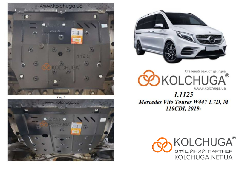 Ochrana motora Mercedes-Benz Vito W447 NEW rok od 2019 nielenže chráni olejovú vaňu pred fyzickým nárazom, ale zároveň celý motorový priestor pred vniknutím vody, prachu a nečistôt. To výrazne predlžuje životnosť remeňov, kladiek a ďalších pohyblivých častí v motorovom priestore. Ochrany sa inštalujú namiesto plastových a ich plynulé tvary kopírujú tvar podvozku vozidla, čím zlepšujú aerodynamiku.