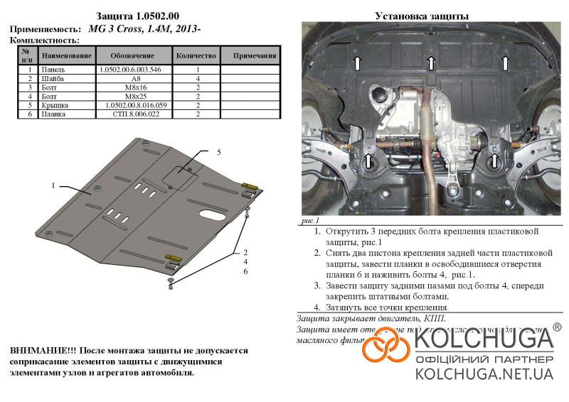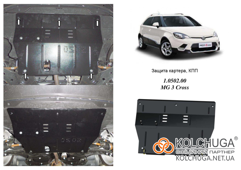 Ochrana motorového priestoru pre MG 3 Cross rok od 2013 sa vyrába pomocou moderných technológií z materiálov najvyššej kvality. Ako základ používame za studena valcovanú oceľ s hrúbkou 2 mm. Pomocou lisovania dávame ochrane jedinečný tvar pre každý automobil tak, aby sa montovala na originálne montážne body bez potreby dodatočného vŕtania alebo zvárania. Vďaka tomu je proces inštalácie maximálne jednoduchý. Všetky potrebné montážne prvky sú súčasťou balenia.