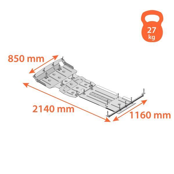Kolchuga patrí medzi najspoľahlivejšie oceľové kryty podvozku na trhu. Vyrábané z vysokopevnostnej ocele, presne tvarované pre každý model auta a navrhnuté tak, aby chránili motor, prevodovku a ďalšie dôležité časti pri jazde v meste aj v teréne. Robustné, odolné a pripravené pre dlhé roky používania.
