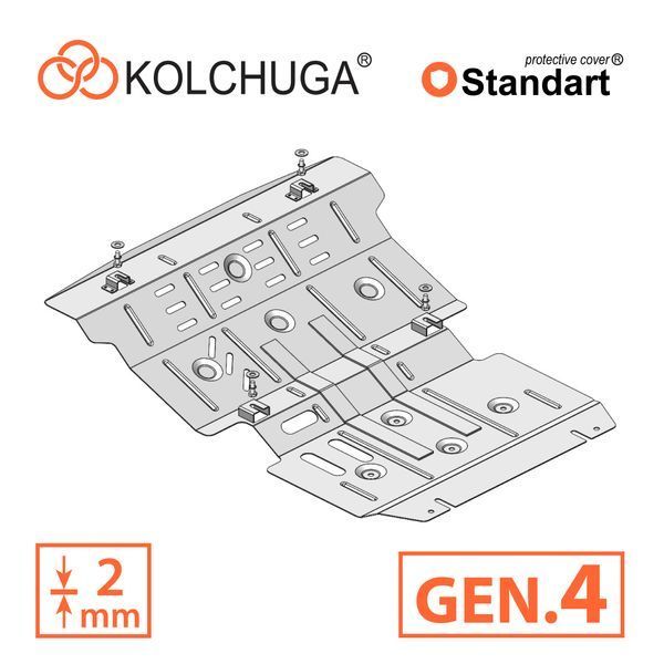 Kolchuga patrí medzi najspoľahlivejšie oceľové kryty podvozku na trhu. Vyrábané z vysokopevnostnej ocele, presne tvarované pre každý model auta a navrhnuté tak, aby chránili motor, prevodovku a ďalšie dôležité časti pri jazde v meste aj v teréne. Robustné, odolné a pripravené pre dlhé roky používania.