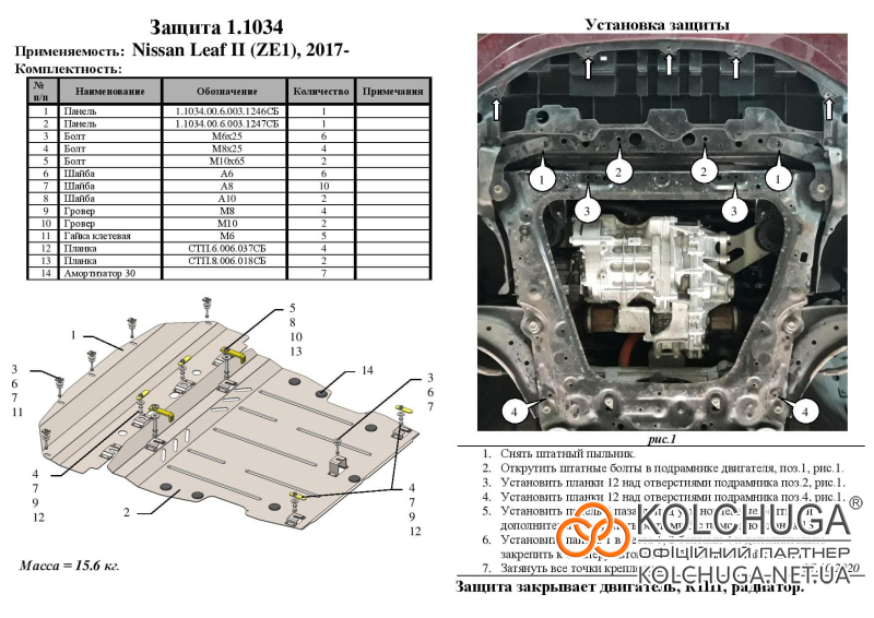 Ochrana motorového priestoru pre Nissan Leaf 2 rok od 2017 sa vyrába pomocou moderných technológií z materiálov najvyššej kvality. Ako základ používame za studena valcovanú oceľ s hrúbkou 2 mm. Pomocou lisovania dávame ochrane jedinečný tvar pre každý automobil tak, aby sa montovala na originálne montážne body bez potreby dodatočného vŕtania alebo zvárania. Vďaka tomu je proces inštalácie maximálne jednoduchý. Všetky potrebné montážne prvky sú súčasťou balenia.