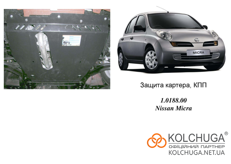 Ochrana motora Nissan Micra K12 rok 2002-2013 nielenže chráni olejovú vaňu pred fyzickým nárazom, ale zároveň celý motorový priestor pred vniknutím vody, prachu a nečistôt. To výrazne predlžuje životnosť remeňov, kladiek a ďalších pohyblivých častí v motorovom priestore. Ochrany sa inštalujú namiesto plastových a ich plynulé tvary kopírujú tvar podvozku vozidla, čím zlepšujú aerodynamiku.