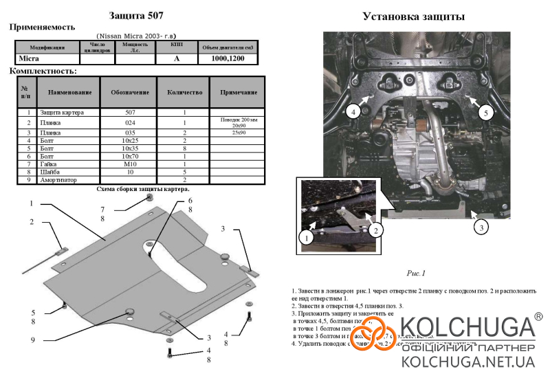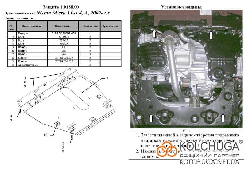 Ochrana motorového priestoru pre Nissan Micra K12 rok 2002-2013 sa vyrába pomocou moderných technológií z materiálov najvyššej kvality. Ako základ používame za studena valcovanú oceľ s hrúbkou 2 mm. Pomocou lisovania dávame ochrane jedinečný tvar pre každý automobil tak, aby sa montovala na originálne montážne body bez potreby dodatočného vŕtania alebo zvárania. Vďaka tomu je proces inštalácie maximálne jednoduchý. Všetky potrebné montážne prvky sú súčasťou balenia.