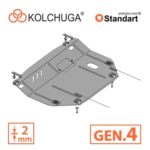 Kolchuga patrí medzi najspoľahlivejšie oceľové kryty podvozku na trhu. Vyrábané z vysokopevnostnej ocele, presne tvarované pre každý model auta a navrhnuté tak, aby chránili motor, prevodovku a ďalšie dôležité časti pri jazde v meste aj v teréne. Robustné, odolné a pripravené pre dlhé roky používania.