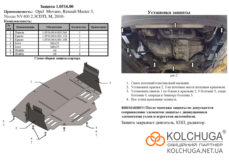 Ochrana motorového priestoru pre Nissan NV400 rok od 2010 sa vyrába pomocou moderných technológií z materiálov najvyššej kvality. Ako základ používame za studena valcovanú oceľ s hrúbkou 2 mm. Pomocou lisovania dávame ochrane jedinečný tvar pre každý automobil tak, aby sa montovala na originálne montážne body bez potreby dodatočného vŕtania alebo zvárania. Vďaka tomu je proces inštalácie maximálne jednoduchý. Všetky potrebné montážne prvky sú súčasťou balenia.