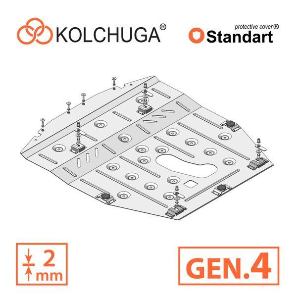Kolchuga patrí medzi najspoľahlivejšie oceľové kryty podvozku na trhu. Vyrábané z vysokopevnostnej ocele, presne tvarované pre každý model auta a navrhnuté tak, aby chránili motor, prevodovku a ďalšie dôležité časti pri jazde v meste aj v teréne. Robustné, odolné a pripravené pre dlhé roky používania.