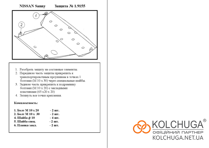 Ochrana motorového priestoru pre Nissan Sunny B15 rok 1998-2007 sa vyrába pomocou moderných technológií z materiálov najvyššej kvality. Ako základ používame za studena valcovanú oceľ s hrúbkou 2 mm. Pomocou lisovania dávame ochrane jedinečný tvar pre každý automobil tak, aby sa montovala na originálne montážne body bez potreby dodatočného vŕtania alebo zvárania. Vďaka tomu je proces inštalácie maximálne jednoduchý. Všetky potrebné montážne prvky sú súčasťou balenia.