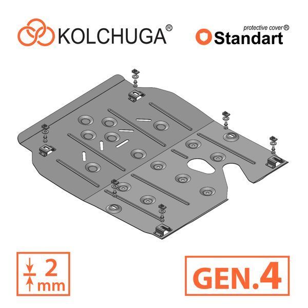 Kolchuga patrí medzi najspoľahlivejšie oceľové kryty podvozku na trhu. Vyrábané z vysokopevnostnej ocele, presne tvarované pre každý model auta a navrhnuté tak, aby chránili motor, prevodovku a ďalšie dôležité časti pri jazde v meste aj v teréne. Robustné, odolné a pripravené pre dlhé roky používania.
