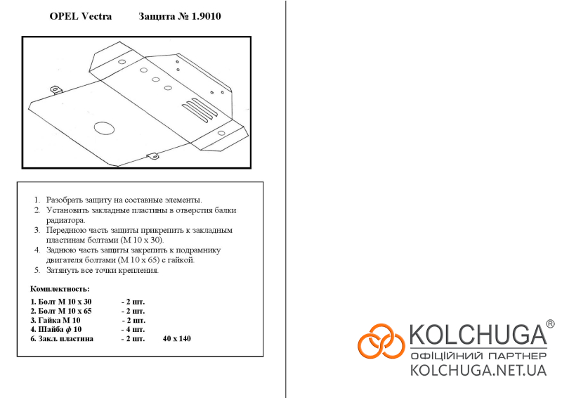 Ochrana motorového priestoru pre Opel Vectra A rok 1988-1995 sa vyrába pomocou moderných technológií z materiálov najvyššej kvality. Ako základ používame za studena valcovanú oceľ s hrúbkou 2 mm. Pomocou lisovania dávame ochrane jedinečný tvar pre každý automobil tak, aby sa montovala na originálne montážne body bez potreby dodatočného vŕtania alebo zvárania. Vďaka tomu je proces inštalácie maximálne jednoduchý. Všetky potrebné montážne prvky sú súčasťou balenia.