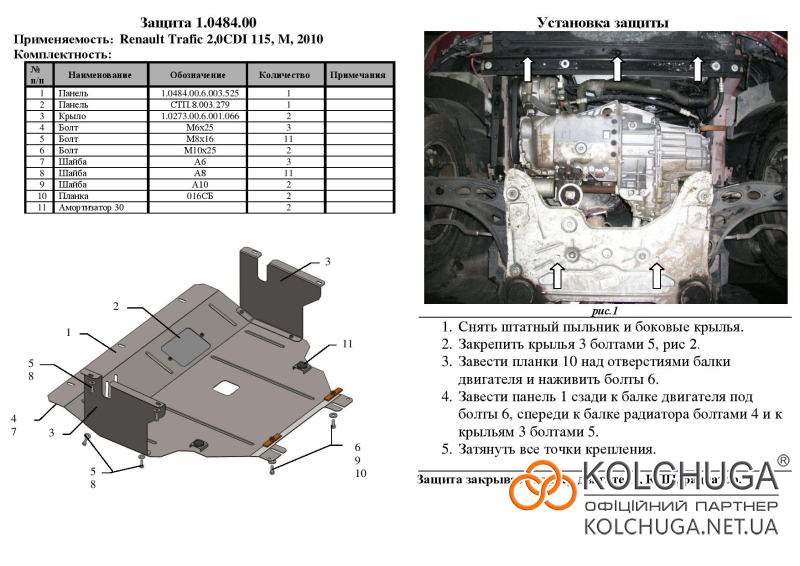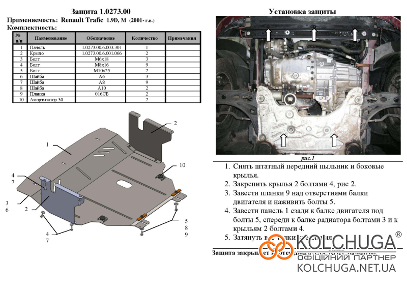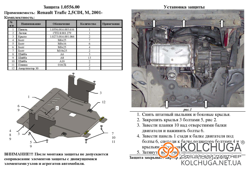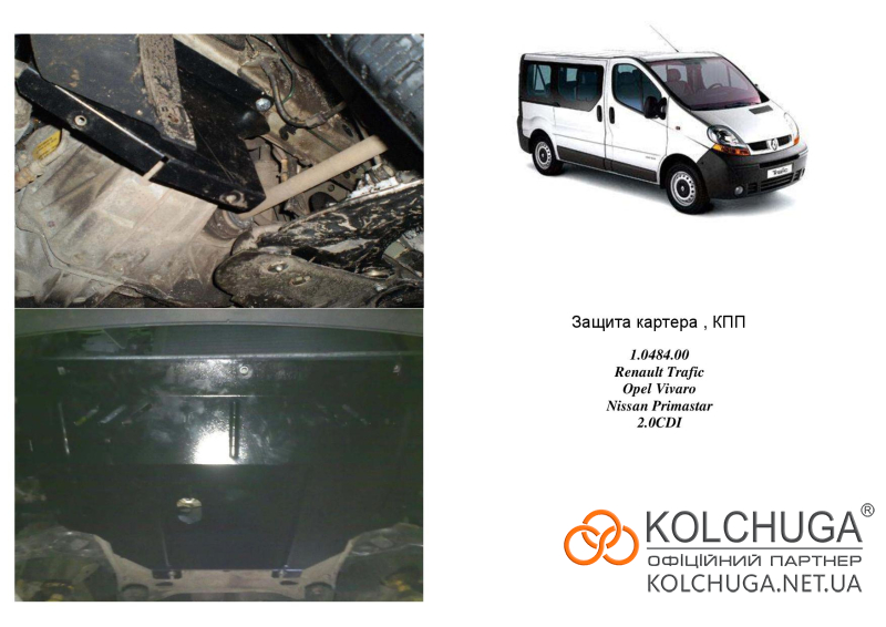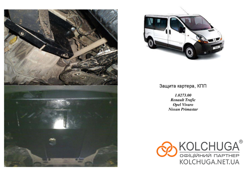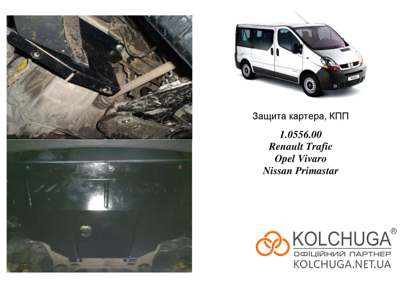 Ochrana motorového priestoru pre Opel Vivaro 1 rok 2001-2014 sa vyrába pomocou moderných technológií z materiálov najvyššej kvality. Ako základ používame za studena valcovanú oceľ s hrúbkou 2 mm. Pomocou lisovania dávame ochrane jedinečný tvar pre každý automobil tak, aby sa montovala na originálne montážne body bez potreby dodatočného vŕtania alebo zvárania. Vďaka tomu je proces inštalácie maximálne jednoduchý. Všetky potrebné montážne prvky sú súčasťou balenia.