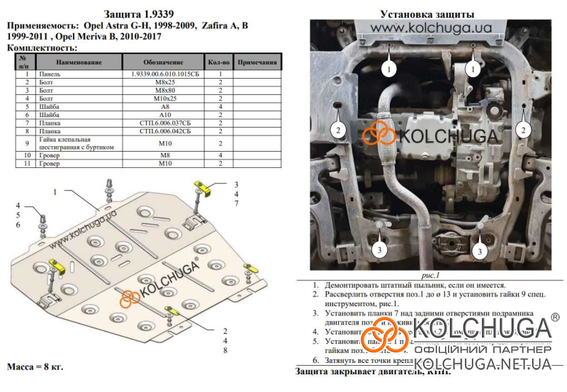 Ochrana motorového priestoru pre Opel Zafira B rok 2005-2014 sa vyrába pomocou moderných technológií z materiálov najvyššej kvality. Ako základ používame za studena valcovanú oceľ s hrúbkou 2 mm. Pomocou lisovania dávame ochrane jedinečný tvar pre každý automobil tak, aby sa montovala na originálne montážne body bez potreby dodatočného vŕtania alebo zvárania. Vďaka tomu je proces inštalácie maximálne jednoduchý. Všetky potrebné montážne prvky sú súčasťou balenia.