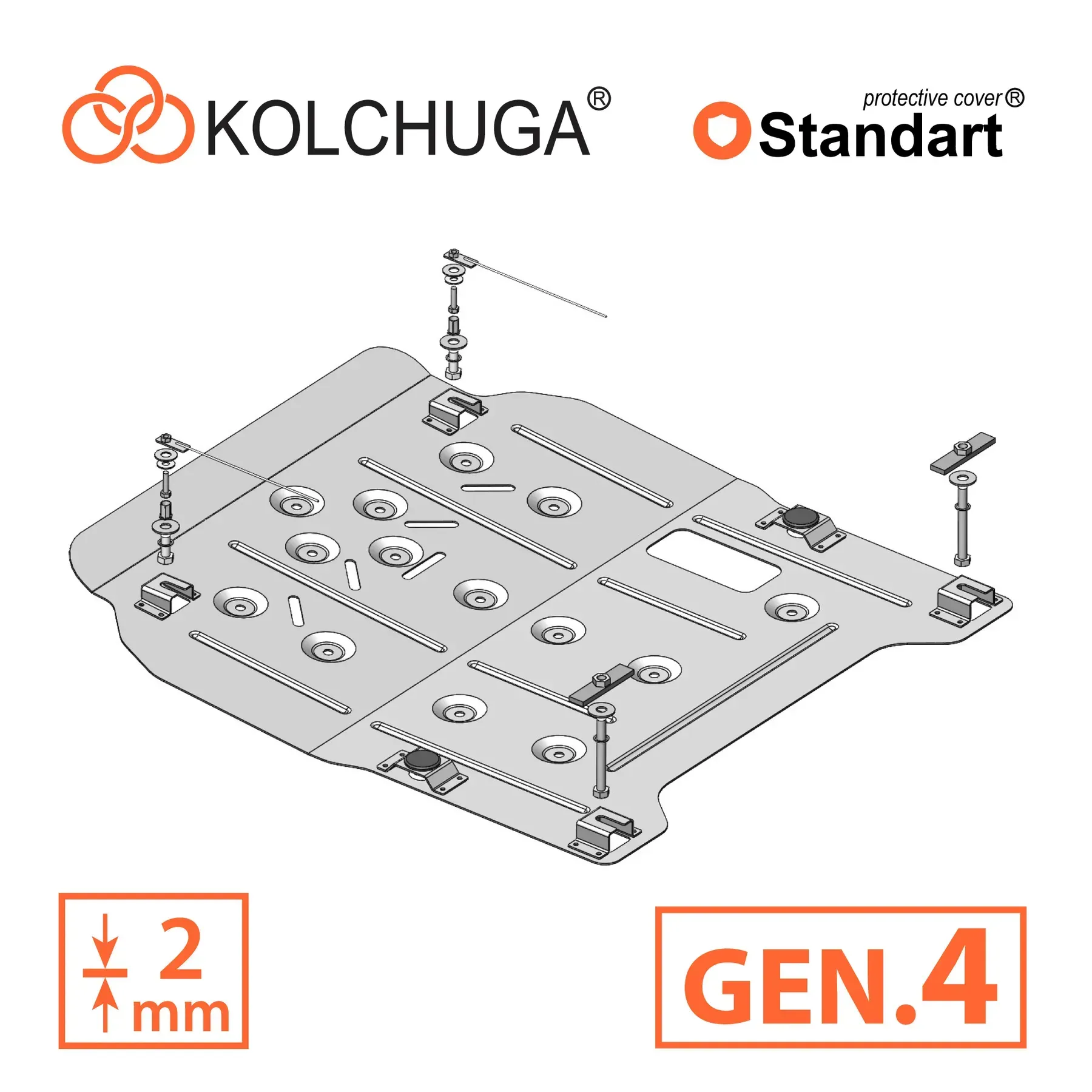 Kolchuga patrí medzi najspoľahlivejšie oceľové kryty podvozku na trhu. Vyrábané z vysokopevnostnej ocele, presne tvarované pre každý model auta a navrhnuté tak, aby chránili motor, prevodovku a ďalšie dôležité časti pri jazde v meste aj v teréne. Robustné, odolné a pripravené pre dlhé roky používania.