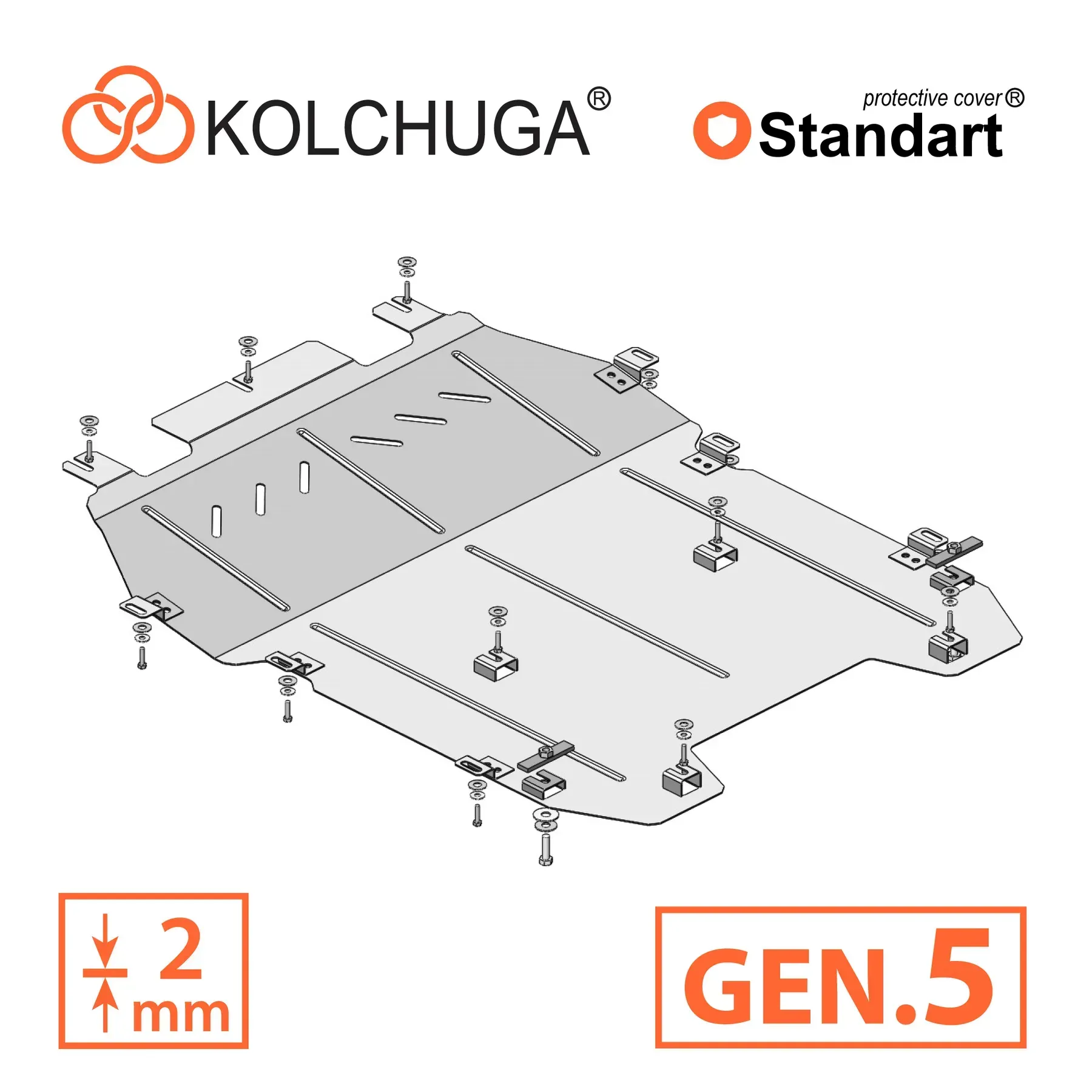 Kolchuga patrí medzi najspoľahlivejšie oceľové kryty podvozku na trhu. Vyrábané z vysokopevnostnej ocele, presne tvarované pre každý model auta a navrhnuté tak, aby chránili motor, prevodovku a ďalšie dôležité časti pri jazde v meste aj v teréne. Robustné, odolné a pripravené pre dlhé roky používania.