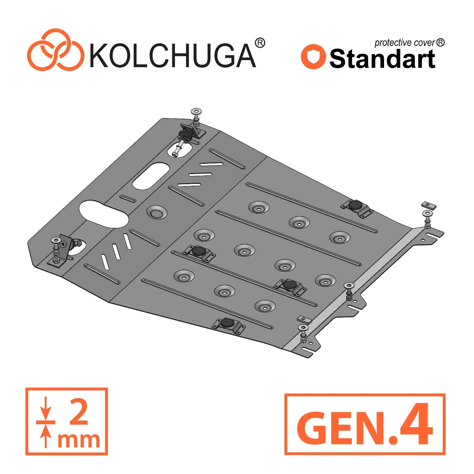 Kolchuga patrí medzi najspoľahlivejšie oceľové kryty podvozku na trhu. Vyrábané z vysokopevnostnej ocele, presne tvarované pre každý model auta a navrhnuté tak, aby chránili motor, prevodovku a ďalšie dôležité časti pri jazde v meste aj v teréne. Robustné, odolné a pripravené pre dlhé roky používania.