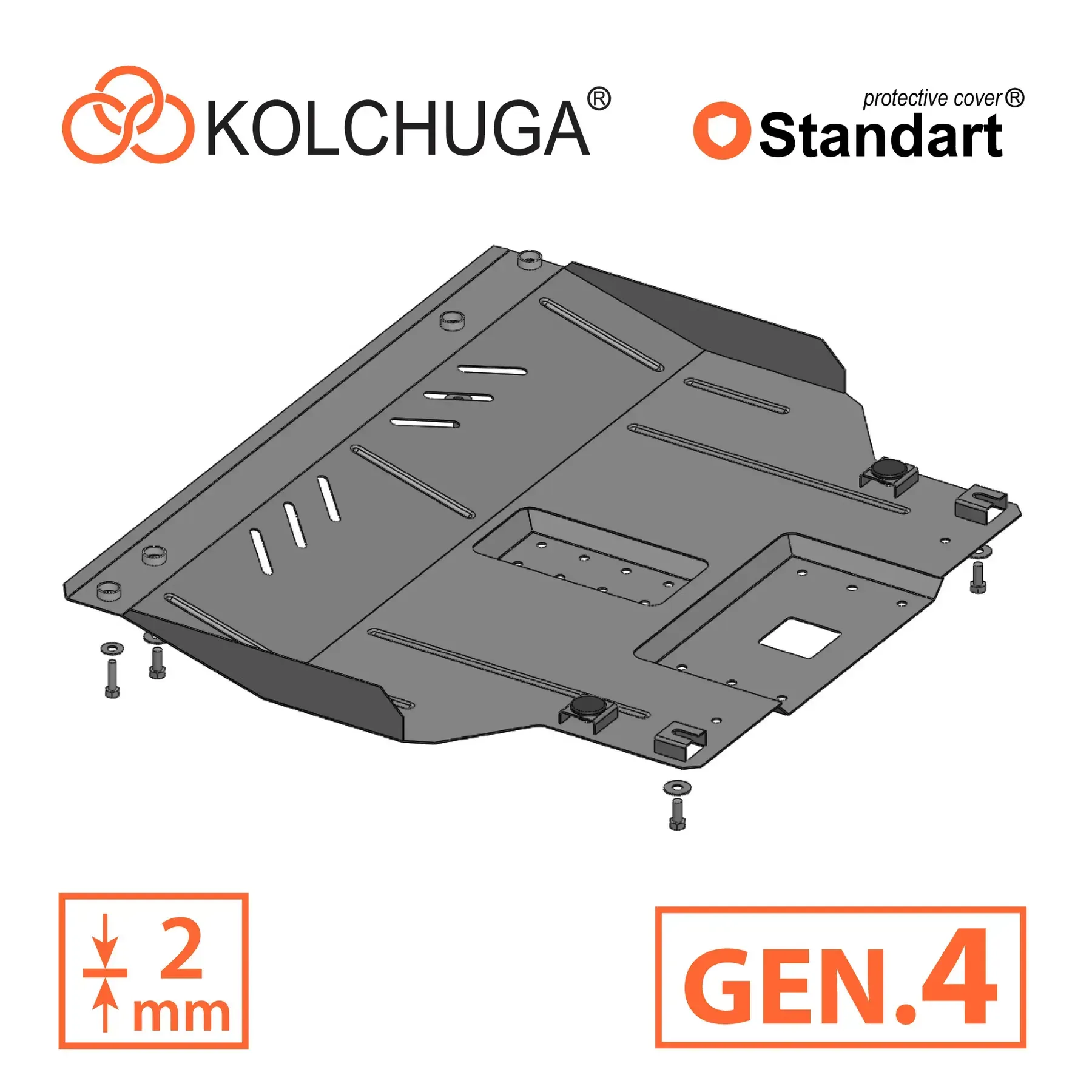 Kolchuga patrí medzi najspoľahlivejšie oceľové kryty podvozku na trhu. Vyrábané z vysokopevnostnej ocele, presne tvarované pre každý model auta a navrhnuté tak, aby chránili motor, prevodovku a ďalšie dôležité časti pri jazde v meste aj v teréne. Robustné, odolné a pripravené pre dlhé roky používania.