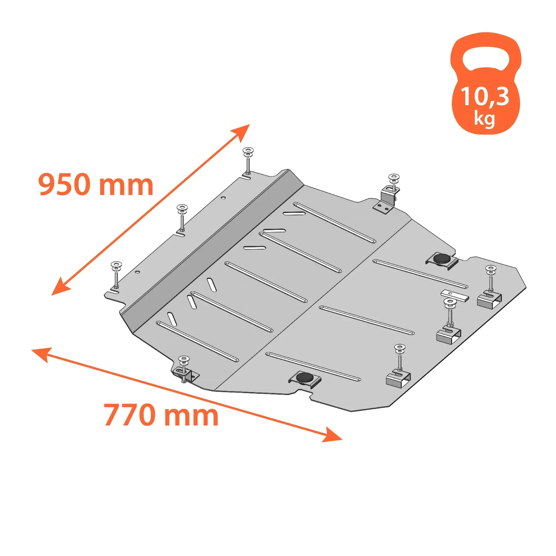 Kolchuga patrí medzi najspoľahlivejšie oceľové kryty podvozku na trhu. Vyrábané z vysokopevnostnej ocele, presne tvarované pre každý model auta a navrhnuté tak, aby chránili motor, prevodovku a ďalšie dôležité časti pri jazde v meste aj v teréne. Robustné, odolné a pripravené pre dlhé roky používania.