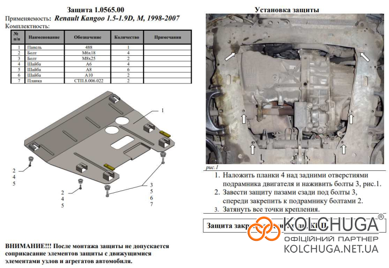 Ochrana motorového priestoru pre Renault Clio 3 rok 2005-2008 sa vyrába pomocou moderných technológií z materiálov najvyššej kvality. Ako základ používame za studena valcovanú oceľ s hrúbkou 2 mm. Pomocou lisovania dávame ochrane jedinečný tvar pre každý automobil tak, aby sa montovala na originálne montážne body bez potreby dodatočného vŕtania alebo zvárania. Vďaka tomu je proces inštalácie maximálne jednoduchý. Všetky potrebné montážne prvky sú súčasťou balenia.