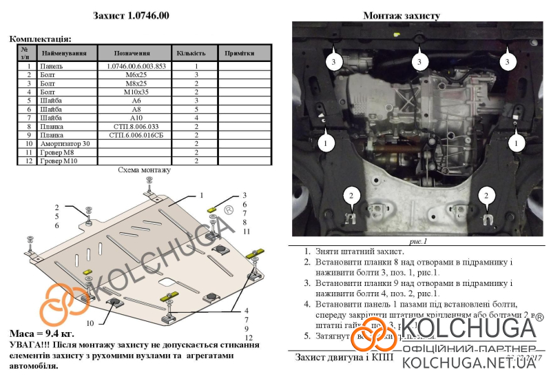 Kolchuga patrí medzi najspoľahlivejšie oceľové kryty podvozku na trhu. Vyrábané z vysokopevnostnej ocele, presne tvarované pre každý model auta a navrhnuté tak, aby chránili motor, prevodovku a ďalšie dôležité časti pri jazde v meste aj v teréne. Robustné, odolné a pripravené pre dlhé roky používania.