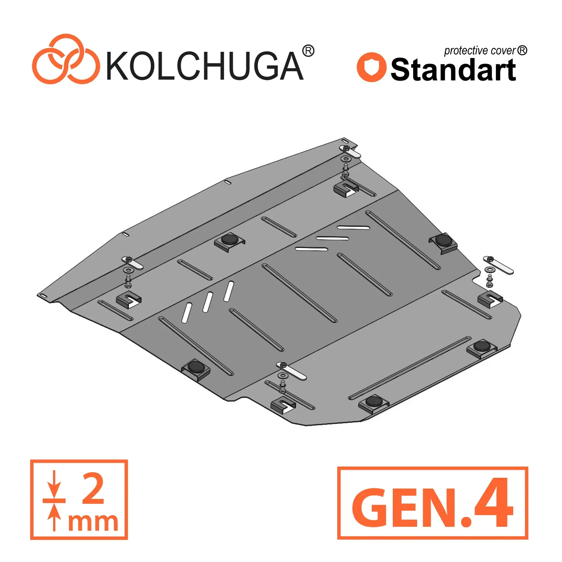 Kolchuga patrí medzi najspoľahlivejšie oceľové kryty podvozku na trhu. Vyrábané z vysokopevnostnej ocele, presne tvarované pre každý model auta a navrhnuté tak, aby chránili motor, prevodovku a ďalšie dôležité časti pri jazde v meste aj v teréne. Robustné, odolné a pripravené pre dlhé roky používania.