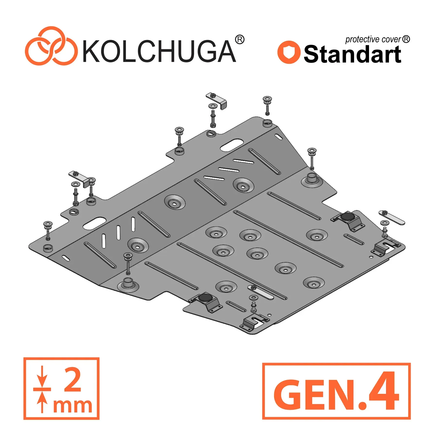 Kolchuga patrí medzi najspoľahlivejšie oceľové kryty podvozku na trhu. Vyrábané z vysokopevnostnej ocele, presne tvarované pre každý model auta a navrhnuté tak, aby chránili motor, prevodovku a ďalšie dôležité časti pri jazde v meste aj v teréne. Robustné, odolné a pripravené pre dlhé roky používania.