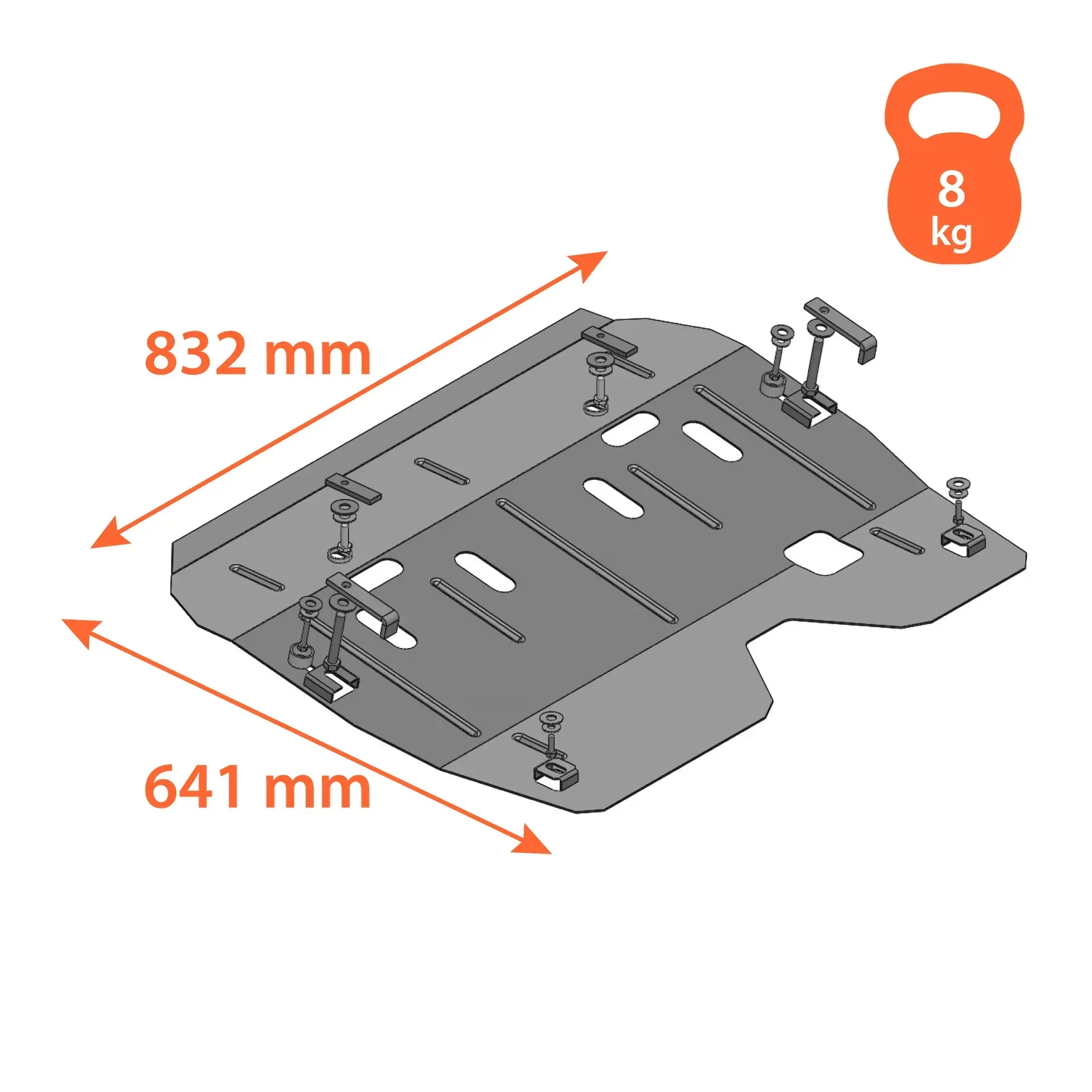 Kolchuga patrí medzi najspoľahlivejšie oceľové kryty podvozku na trhu. Vyrábané z vysokopevnostnej ocele, presne tvarované pre každý model auta a navrhnuté tak, aby chránili motor, prevodovku a ďalšie dôležité časti pri jazde v meste aj v teréne. Robustné, odolné a pripravené pre dlhé roky používania.