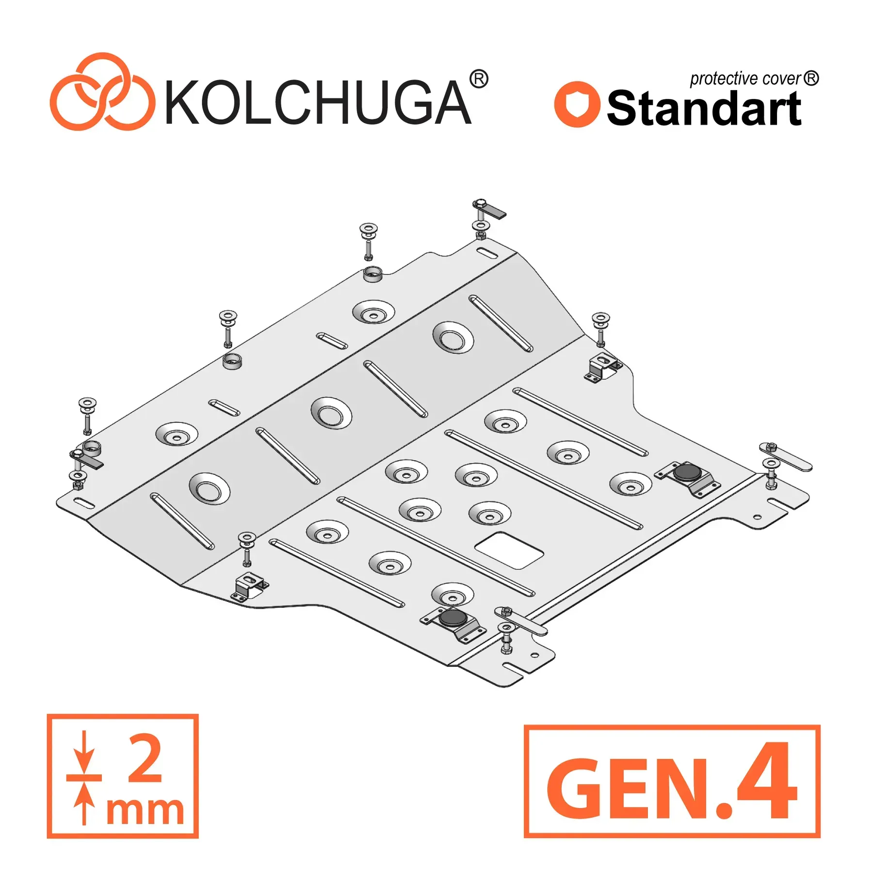 Kolchuga patrí medzi najspoľahlivejšie oceľové kryty podvozku na trhu. Vyrábané z vysokopevnostnej ocele, presne tvarované pre každý model auta a navrhnuté tak, aby chránili motor, prevodovku a ďalšie dôležité časti pri jazde v meste aj v teréne. Robustné, odolné a pripravené pre dlhé roky používania.