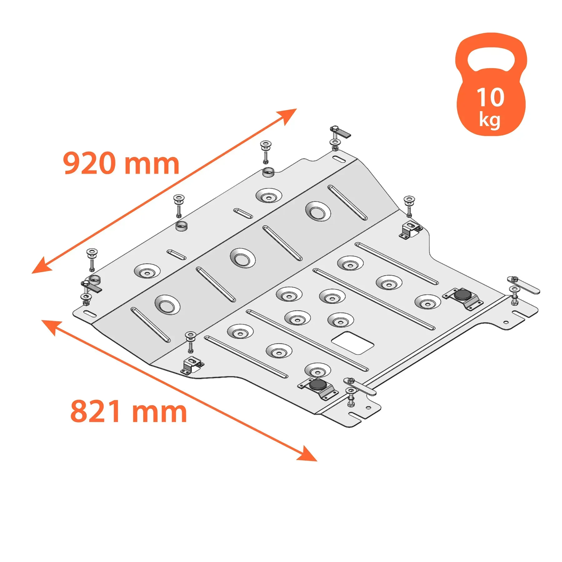 Kolchuga patrí medzi najspoľahlivejšie oceľové kryty podvozku na trhu. Vyrábané z vysokopevnostnej ocele, presne tvarované pre každý model auta a navrhnuté tak, aby chránili motor, prevodovku a ďalšie dôležité časti pri jazde v meste aj v teréne. Robustné, odolné a pripravené pre dlhé roky používania.