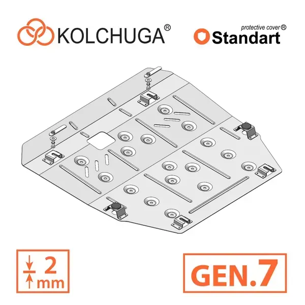 Kolchuga patrí medzi najspoľahlivejšie oceľové kryty podvozku na trhu. Vyrábané z vysokopevnostnej ocele, presne tvarované pre každý model auta a navrhnuté tak, aby chránili motor, prevodovku a ďalšie dôležité časti pri jazde v meste aj v teréne. Robustné, odolné a pripravené pre dlhé roky používania.