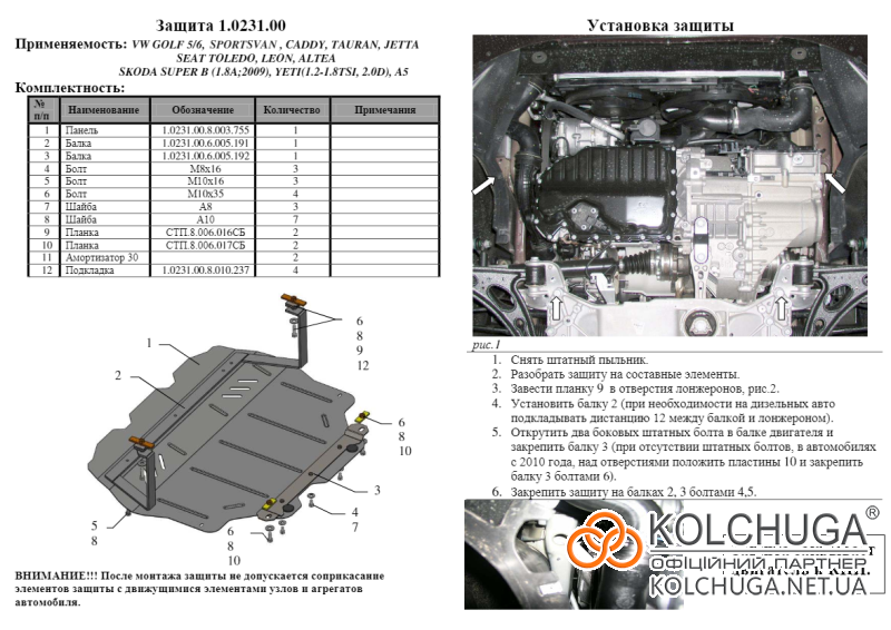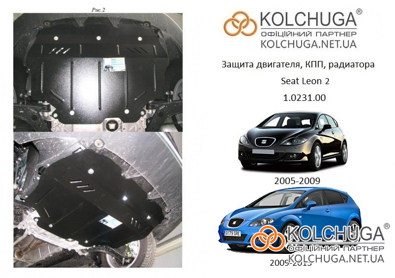 Ochrana motorového priestoru pre Seat Leon 2 rok 2005-2013 sa vyrába pomocou moderných technológií z materiálov najvyššej kvality. Ako základ používame za studena valcovanú oceľ s hrúbkou 2 mm. Pomocou lisovania dávame ochrane jedinečný tvar pre každý automobil tak, aby sa montovala na originálne montážne body bez potreby dodatočného vŕtania alebo zvárania. Vďaka tomu je proces inštalácie maximálne jednoduchý. Všetky potrebné montážne prvky sú súčasťou balenia.