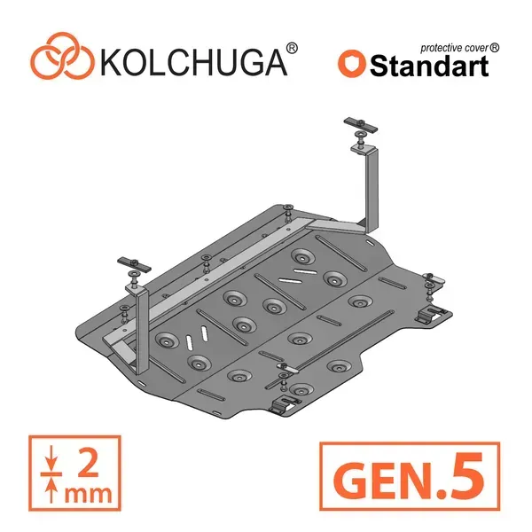 Kolchuga patrí medzi najspoľahlivejšie oceľové kryty podvozku na trhu. Vyrábané z vysokopevnostnej ocele, presne tvarované pre každý model auta a navrhnuté tak, aby chránili motor, prevodovku a ďalšie dôležité časti pri jazde v meste aj v teréne. Robustné, odolné a pripravené pre dlhé roky používania.