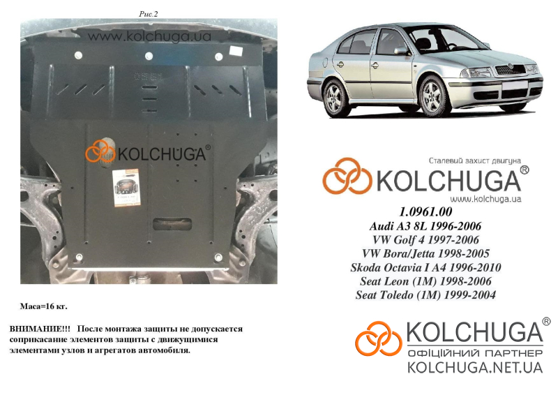 Ochrana motorového priestoru pre Skoda Octavia A4 Tour rok 1997-2010 sa vyrába pomocou moderných technológií z materiálov najvyššej kvality. Ako základ používame za studena valcovanú oceľ s hrúbkou 2 mm. Pomocou lisovania dávame ochrane jedinečný tvar pre každý automobil tak, aby sa montovala na originálne montážne body bez potreby dodatočného vŕtania alebo zvárania. Vďaka tomu je proces inštalácie maximálne jednoduchý. Všetky potrebné montážne prvky sú súčasťou balenia.