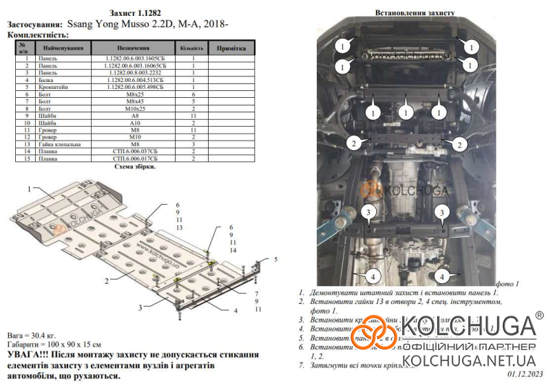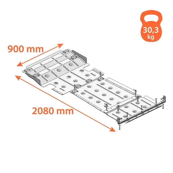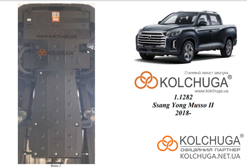 Ochrana motorového priestoru pre Ssang Yong Musso rok od 2018 sa vyrába pomocou moderných technológií z materiálov najvyššej kvality. Ako základ používame za studena valcovanú oceľ s hrúbkou 2 mm. Pomocou lisovania dávame ochrane jedinečný tvar pre každý automobil tak, aby sa montovala na originálne montážne body bez potreby dodatočného vŕtania alebo zvárania. Vďaka tomu je proces inštalácie maximálne jednoduchý. Všetky potrebné montážne prvky sú súčasťou balenia.