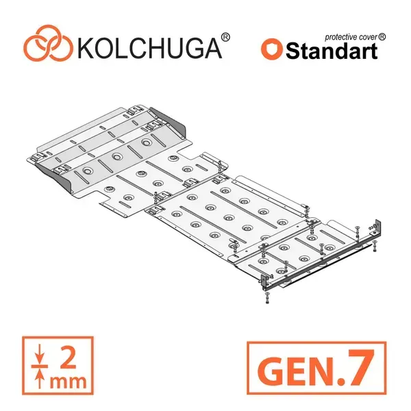 Kolchuga patrí medzi najspoľahlivejšie oceľové kryty podvozku na trhu. Vyrábané z vysokopevnostnej ocele, presne tvarované pre každý model auta a navrhnuté tak, aby chránili motor, prevodovku a ďalšie dôležité časti pri jazde v meste aj v teréne. Robustné, odolné a pripravené pre dlhé roky používania.