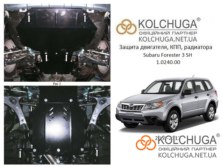 Ochrana motora Subaru Forester 3 SH rok 2008-2012 nielenže chráni olejovú vaňu pred fyzickým nárazom, ale zároveň celý motorový priestor pred vniknutím vody, prachu a nečistôt. To výrazne predlžuje životnosť remeňov, kladiek a ďalších pohyblivých častí v motorovom priestore. Ochrany sa inštalujú namiesto plastových a ich plynulé tvary kopírujú tvar podvozku vozidla, čím zlepšujú aerodynamiku.