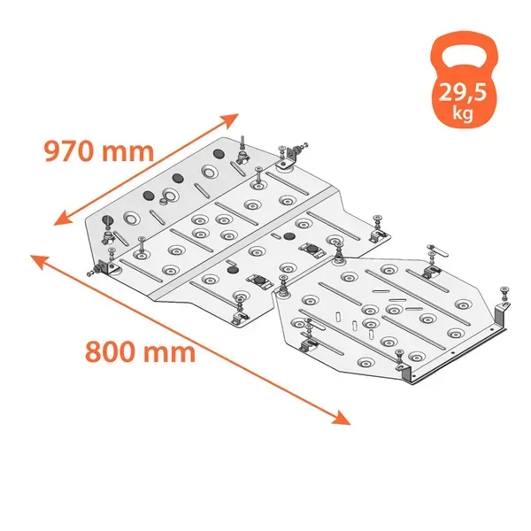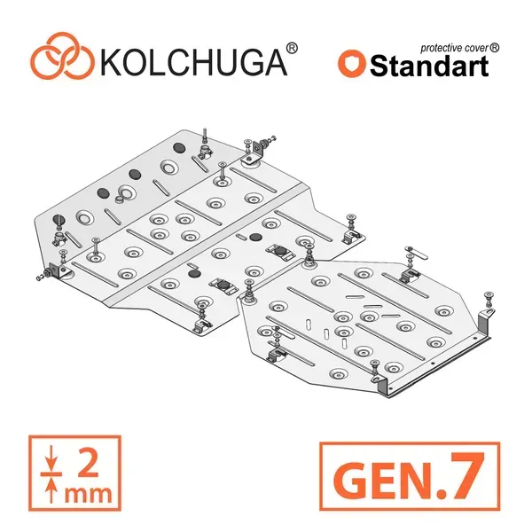 Kolchuga patrí medzi najspoľahlivejšie oceľové kryty podvozku na trhu. Vyrábané z vysokopevnostnej ocele, presne tvarované pre každý model auta a navrhnuté tak, aby chránili motor, prevodovku a ďalšie dôležité časti pri jazde v meste aj v teréne. Robustné, odolné a pripravené pre dlhé roky používania.
