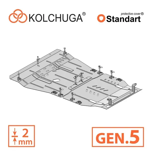 Kolchuga patrí medzi najspoľahlivejšie oceľové kryty podvozku na trhu. Vyrábané z vysokopevnostnej ocele, presne tvarované pre každý model auta a navrhnuté tak, aby chránili motor, prevodovku a ďalšie dôležité časti pri jazde v meste aj v teréne. Robustné, odolné a pripravené pre dlhé roky používania.