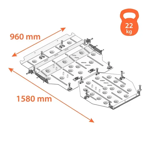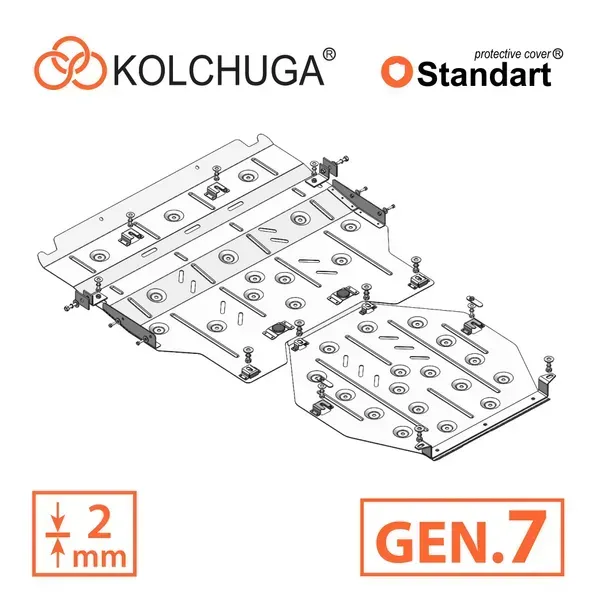 Kolchuga patrí medzi najspoľahlivejšie oceľové kryty podvozku na trhu. Vyrábané z vysokopevnostnej ocele, presne tvarované pre každý model auta a navrhnuté tak, aby chránili motor, prevodovku a ďalšie dôležité časti pri jazde v meste aj v teréne. Robustné, odolné a pripravené pre dlhé roky používania.
