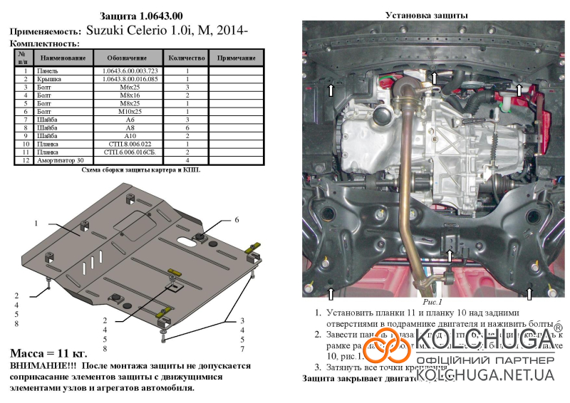 Ochrana motorového priestoru pre Suzuki Celerio rok od 2014 sa vyrába pomocou moderných technológií z materiálov najvyššej kvality. Ako základ používame za studena valcovanú oceľ s hrúbkou 2 mm. Pomocou lisovania dávame ochrane jedinečný tvar pre každý automobil tak, aby sa montovala na originálne montážne body bez potreby dodatočného vŕtania alebo zvárania. Vďaka tomu je proces inštalácie maximálne jednoduchý. Všetky potrebné montážne prvky sú súčasťou balenia.