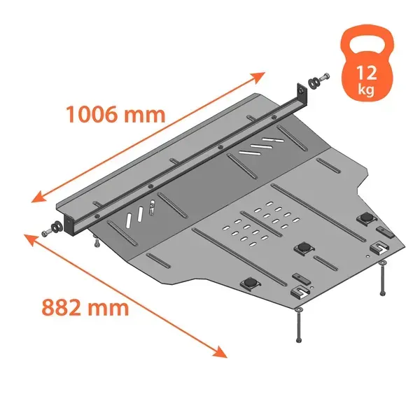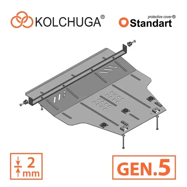 Kolchuga patrí medzi najspoľahlivejšie oceľové kryty podvozku na trhu. Vyrábané z vysokopevnostnej ocele, presne tvarované pre každý model auta a navrhnuté tak, aby chránili motor, prevodovku a ďalšie dôležité časti pri jazde v meste aj v teréne. Robustné, odolné a pripravené pre dlhé roky používania.