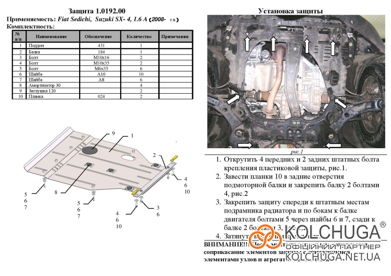 Ochrana motorového priestoru pre Suzuki SX4 1 rok 2006-2013 sa vyrába pomocou moderných technológií z materiálov najvyššej kvality. Ako základ používame za studena valcovanú oceľ s hrúbkou 2 mm. Pomocou lisovania dávame ochrane jedinečný tvar pre každý automobil tak, aby sa montovala na originálne montážne body bez potreby dodatočného vŕtania alebo zvárania. Vďaka tomu je proces inštalácie maximálne jednoduchý. Všetky potrebné montážne prvky sú súčasťou balenia.