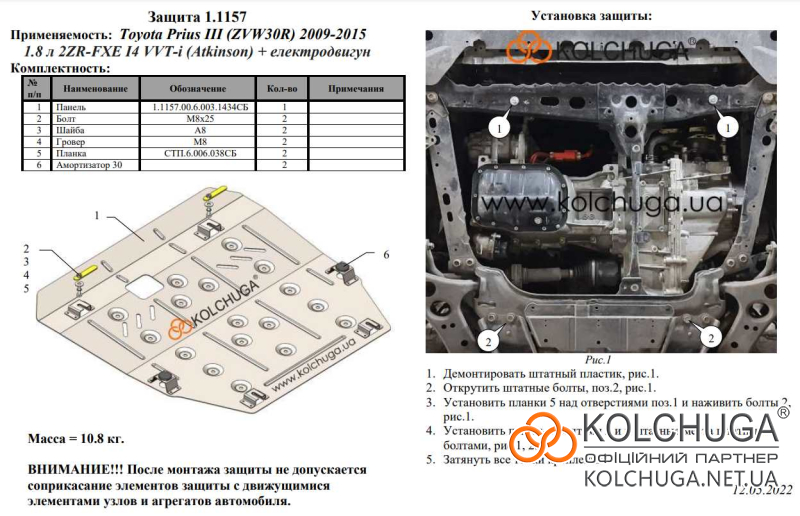 Ochrana motorového priestoru pre Toyota Corolla E14 / E15 rok 2006-2012 sa vyrába pomocou moderných technológií z materiálov najvyššej kvality. Ako základ používame za studena valcovanú oceľ s hrúbkou 2 mm. Pomocou lisovania dávame ochrane jedinečný tvar pre každý automobil tak, aby sa montovala na originálne montážne body bez potreby dodatočného vŕtania alebo zvárania. Vďaka tomu je proces inštalácie maximálne jednoduchý. Všetky potrebné montážne prvky sú súčasťou balenia.