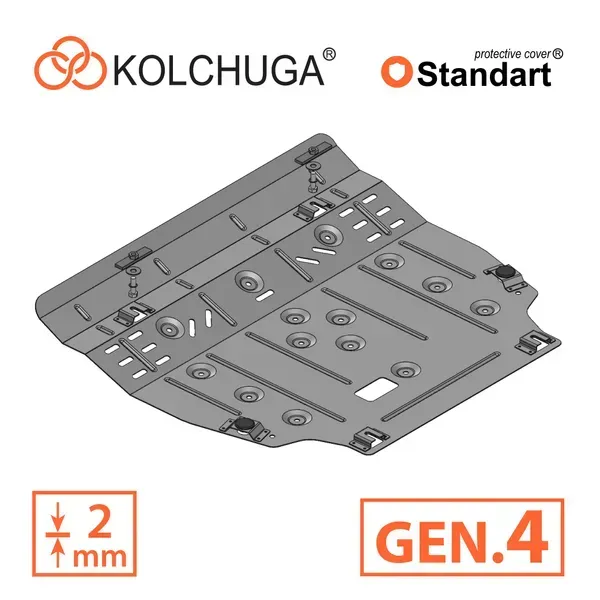 Kolchuga patrí medzi najspoľahlivejšie oceľové kryty podvozku na trhu. Vyrábané z vysokopevnostnej ocele, presne tvarované pre každý model auta a navrhnuté tak, aby chránili motor, prevodovku a ďalšie dôležité časti pri jazde v meste aj v teréne. Robustné, odolné a pripravené pre dlhé roky používania.