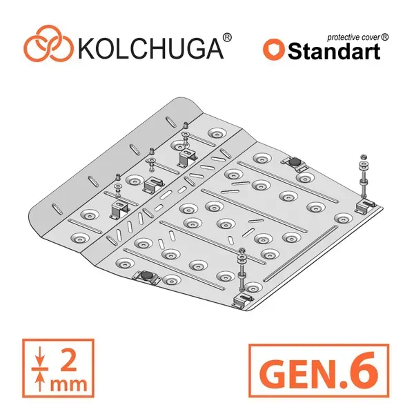 Kolchuga patrí medzi najspoľahlivejšie oceľové kryty podvozku na trhu. Vyrábané z vysokopevnostnej ocele, presne tvarované pre každý model auta a navrhnuté tak, aby chránili motor, prevodovku a ďalšie dôležité časti pri jazde v meste aj v teréne. Robustné, odolné a pripravené pre dlhé roky používania.