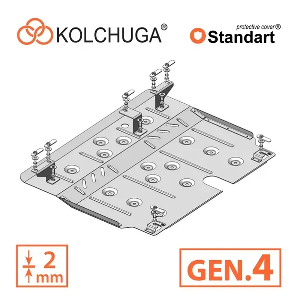 Kolchuga patrí medzi najspoľahlivejšie oceľové kryty podvozku na trhu. Vyrábané z vysokopevnostnej ocele, presne tvarované pre každý model auta a navrhnuté tak, aby chránili motor, prevodovku a ďalšie dôležité časti pri jazde v meste aj v teréne. Robustné, odolné a pripravené pre dlhé roky používania.