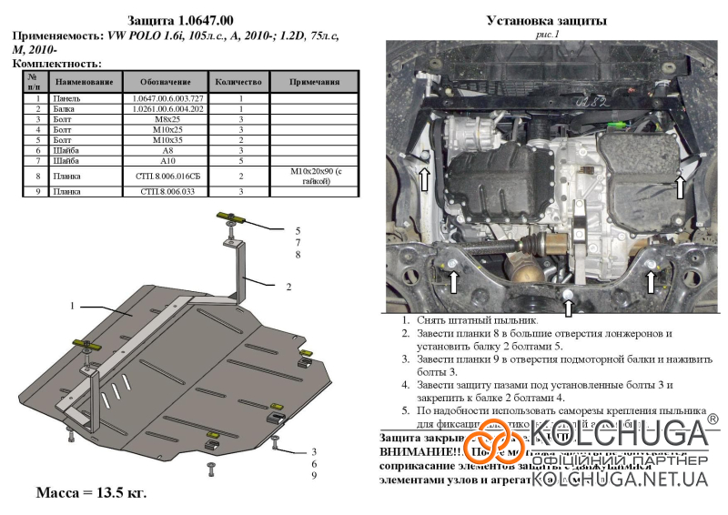 Ochrana motorového priestoru pre Volkswagen Fox rok od 2003 sa vyrába pomocou moderných technológií z materiálov najvyššej kvality. Ako základ používame za studena valcovanú oceľ s hrúbkou 2 mm. Pomocou lisovania dávame ochrane jedinečný tvar pre každý automobil tak, aby sa montovala na originálne montážne body bez potreby dodatočného vŕtania alebo zvárania. Vďaka tomu je proces inštalácie maximálne jednoduchý. Všetky potrebné montážne prvky sú súčasťou balenia.