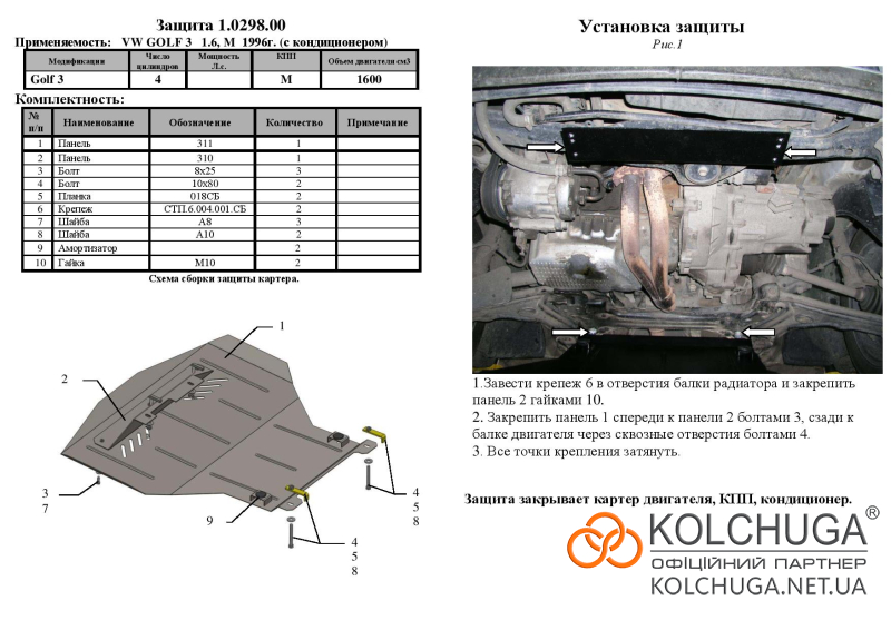 Ochrana motorového priestoru pre Volkswagen Golf 3 rok 1991-1997 sa vyrába pomocou moderných technológií z materiálov najvyššej kvality. Ako základ používame za studena valcovanú oceľ s hrúbkou 2 mm. Pomocou lisovania dávame ochrane jedinečný tvar pre každý automobil tak, aby sa montovala na originálne montážne body bez potreby dodatočného vŕtania alebo zvárania. Vďaka tomu je proces inštalácie maximálne jednoduchý. Všetky potrebné montážne prvky sú súčasťou balenia.