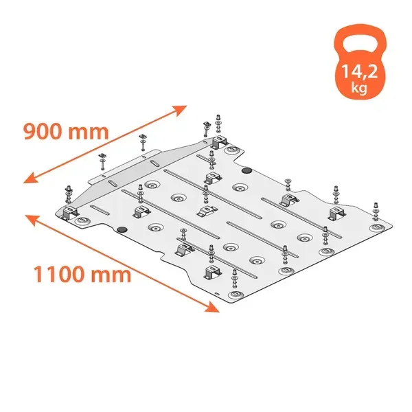 Kolchuga patrí medzi najspoľahlivejšie oceľové kryty podvozku na trhu. Vyrábané z vysokopevnostnej ocele, presne tvarované pre každý model auta a navrhnuté tak, aby chránili motor, prevodovku a ďalšie dôležité časti pri jazde v meste aj v teréne. Robustné, odolné a pripravené pre dlhé roky používania.