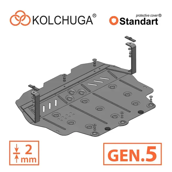 Kolchuga patrí medzi najspoľahlivejšie oceľové kryty podvozku na trhu. Vyrábané z vysokopevnostnej ocele, presne tvarované pre každý model auta a navrhnuté tak, aby chránili motor, prevodovku a ďalšie dôležité časti pri jazde v meste aj v teréne. Robustné, odolné a pripravené pre dlhé roky používania.