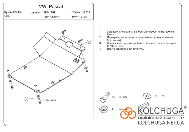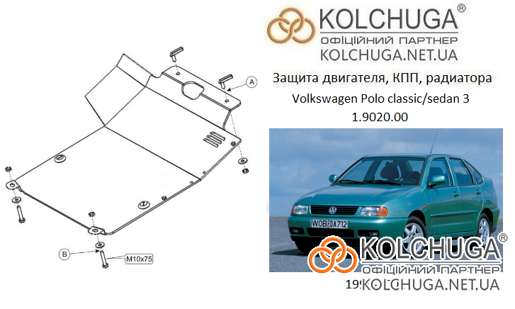 Ochrana motorového priestoru pre Volkswagen Polo 3 sedan rok 1994-2001 sa vyrába pomocou moderných technológií z materiálov najvyššej kvality. Ako základ používame za studena valcovanú oceľ s hrúbkou 2 mm. Pomocou lisovania dávame ochrane jedinečný tvar pre každý automobil tak, aby sa montovala na originálne montážne body bez potreby dodatočného vŕtania alebo zvárania. Vďaka tomu je proces inštalácie maximálne jednoduchý. Všetky potrebné montážne prvky sú súčasťou balenia.